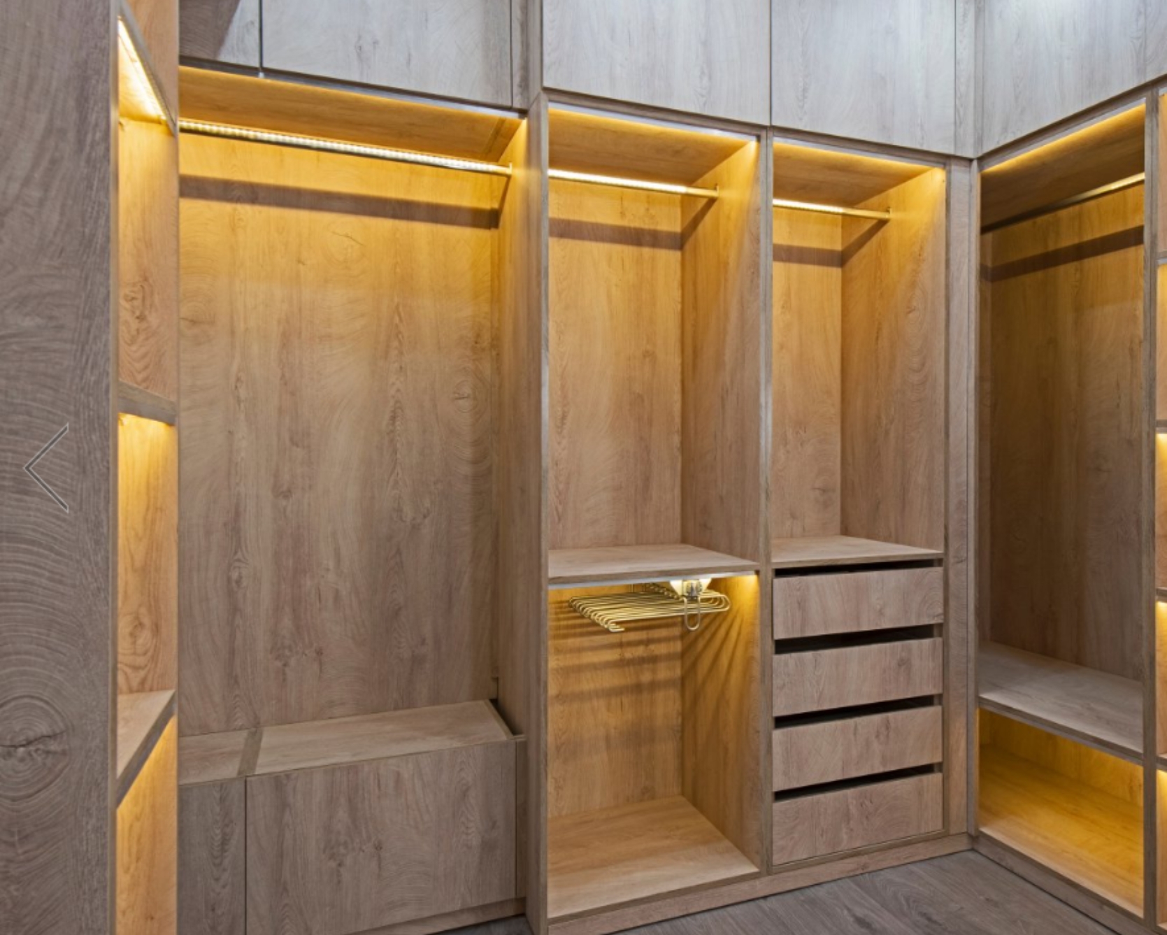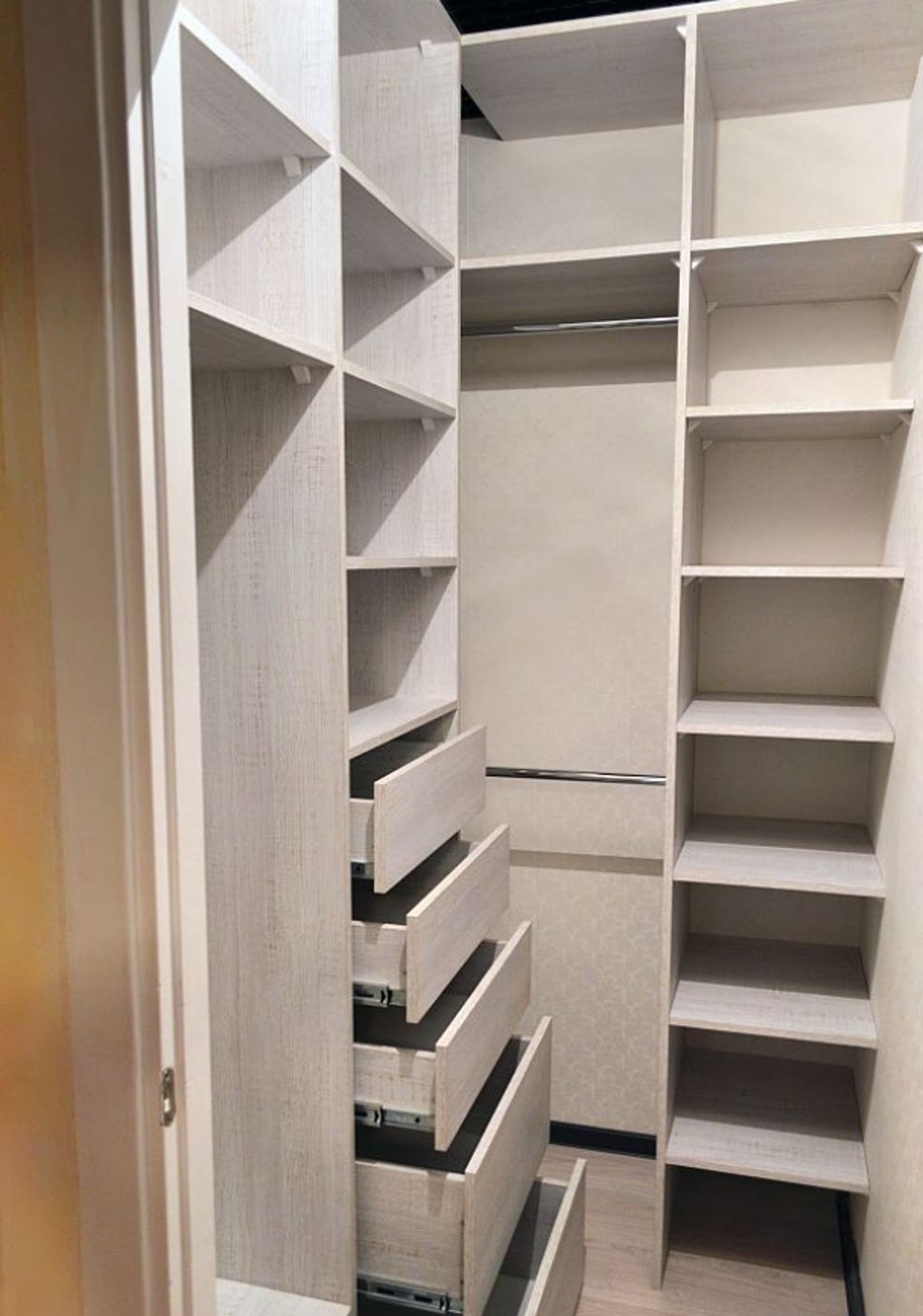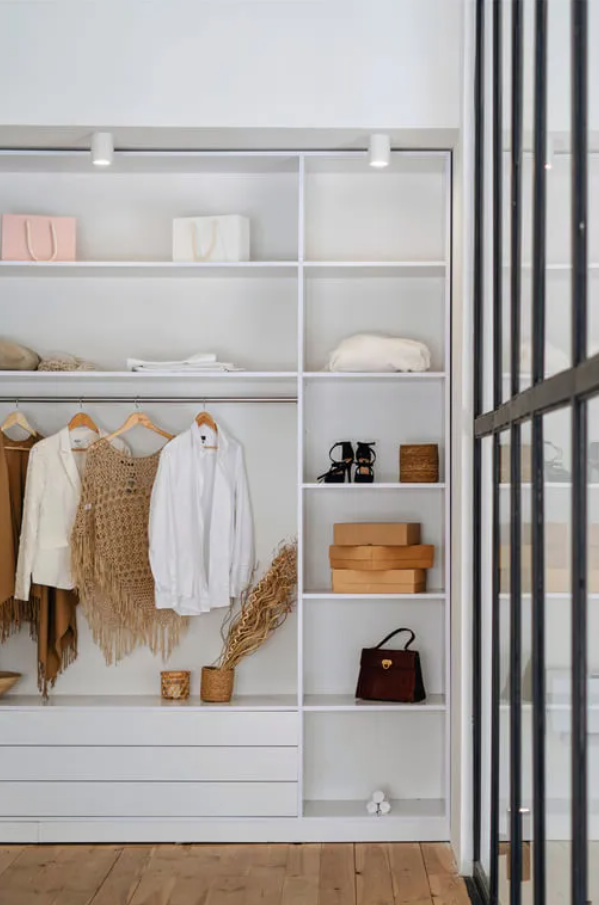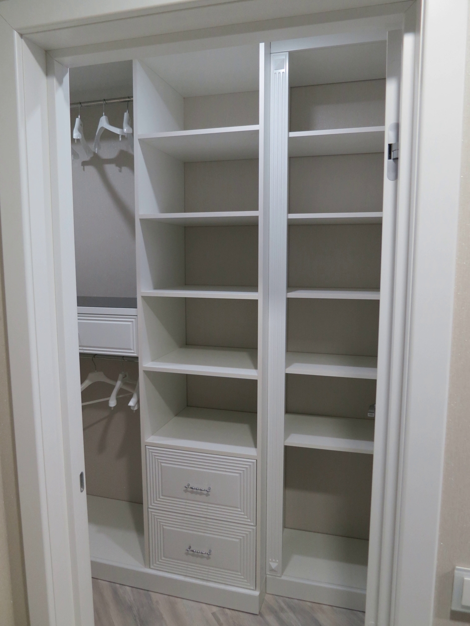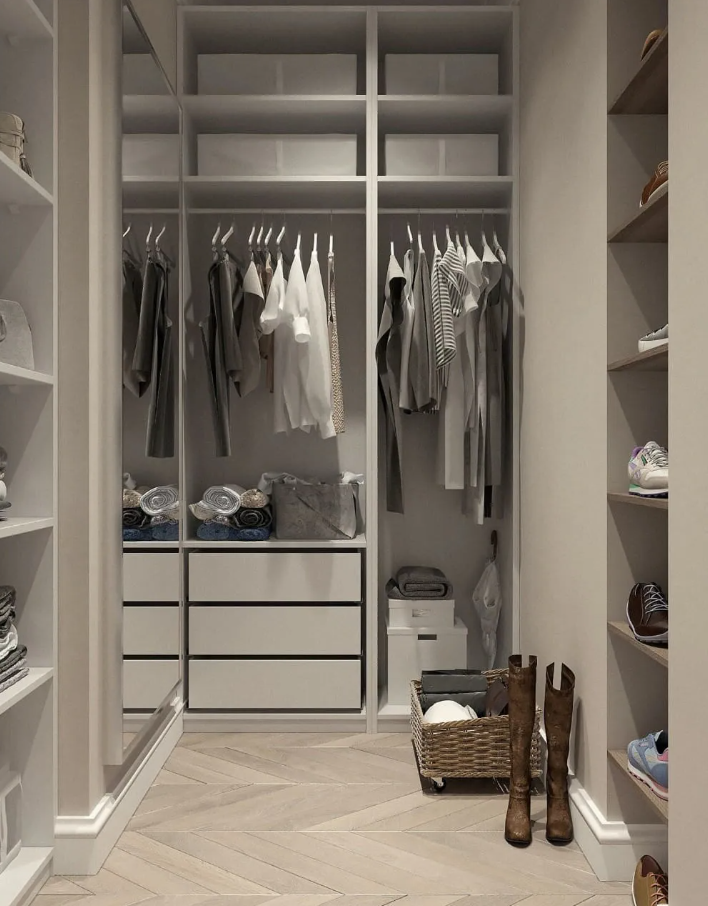 - Улучшенная конфигурация: Индивидуальные отсеки, ящики и регулируемые полки делают организацию одежды и аксессуаров проще, чем когда-либо. Также подумайте о добавлении освещения.