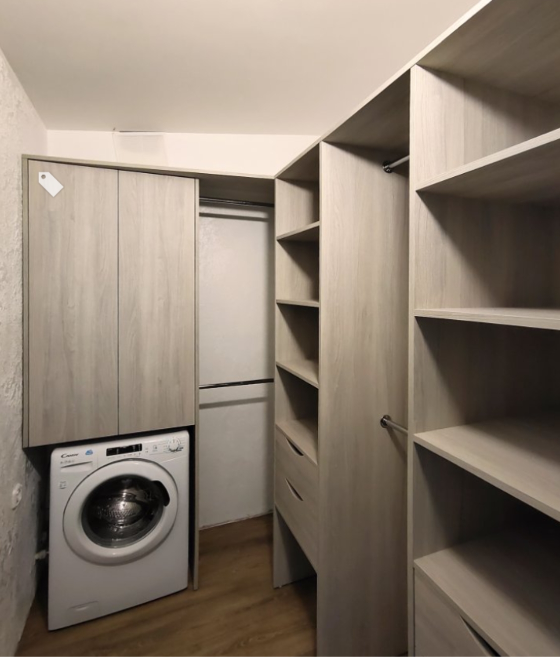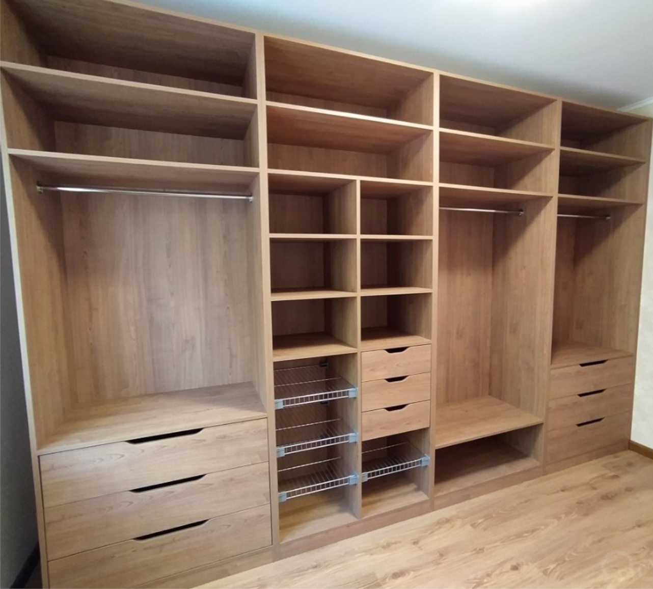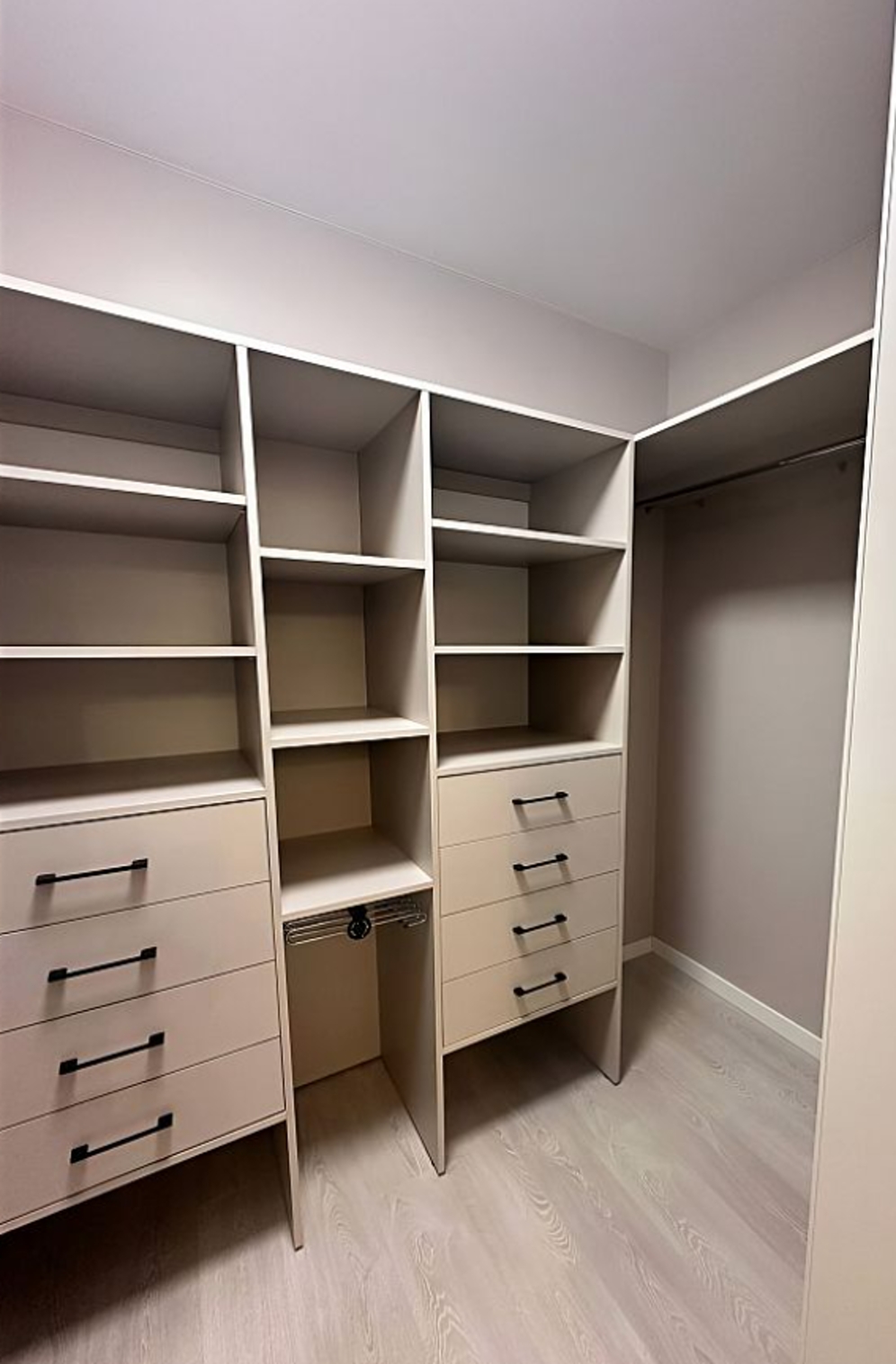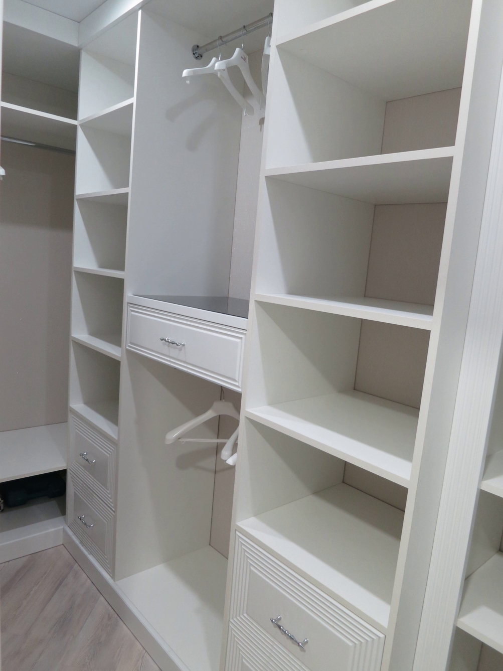- Улучшенная конфигурация: Индивидуальные отсеки, ящики и регулируемые полки делают организацию одежды и аксессуаров проще, чем когда-либо. Также подумайте о добавлении освещения.