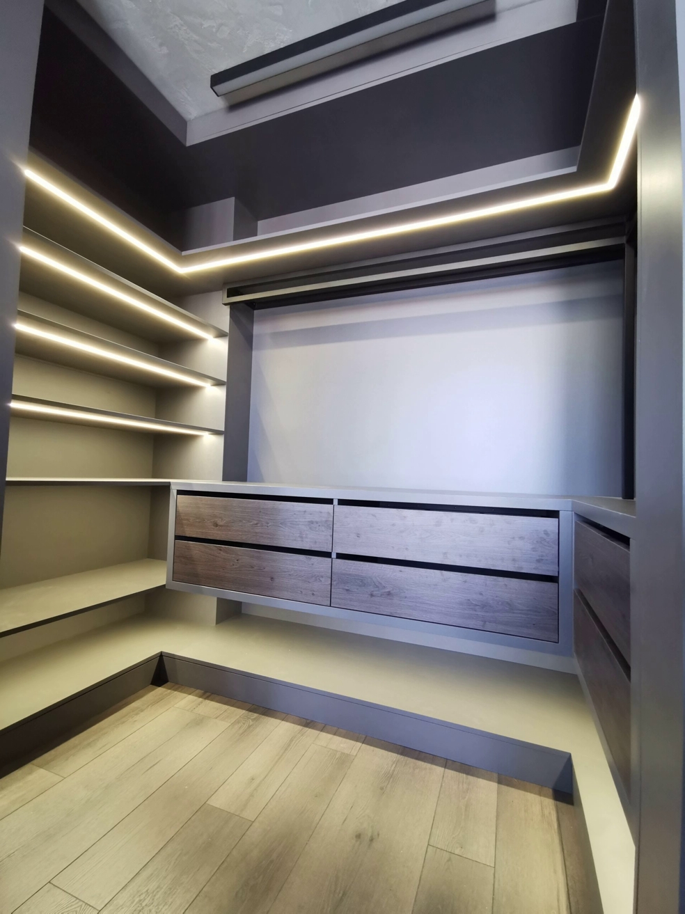 Независимо от того, являетесь ли вы страстным любителем моды или просто ищете эффективный способ управления своим гардеробом, индивидуальная гардеробная может быть адаптирована к вашему образу жизни. От гардеробных, интегрированных в ниши и проёмы, до большого выделенного гардероба, от открытого гардероба до секретных отсеков, возможности безграничны для дизайна вашей идеальной мебели.