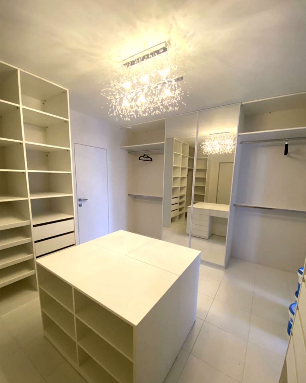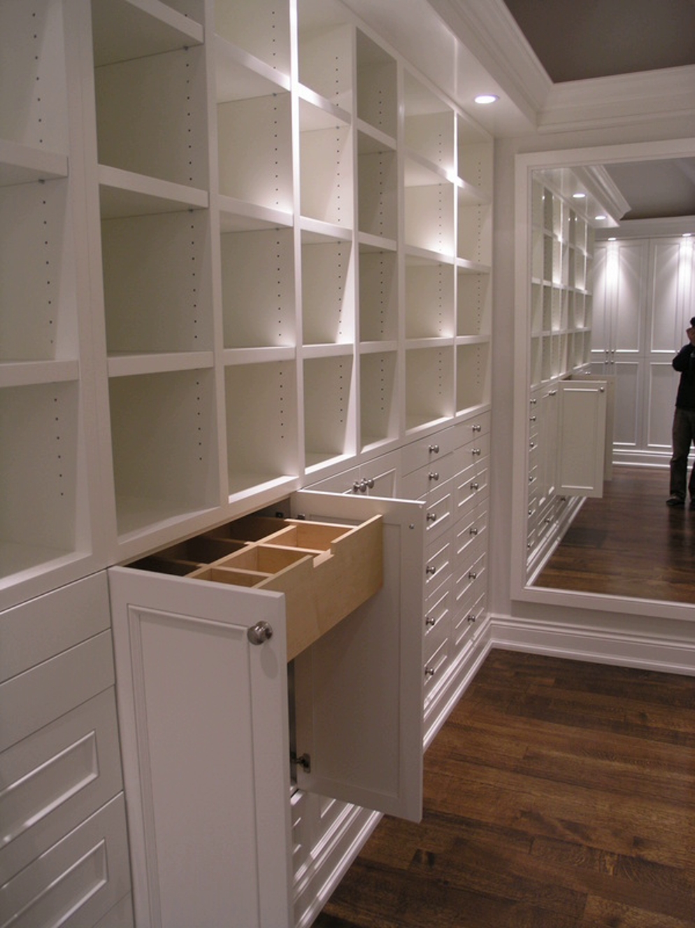 Для высокого класса роскошная гардеробная на заказ может быть оснащена встроенным освещением, негабаритными зеркалами, моторизованными держателями галстуков и ящиками для плавного закрытия. Каждая гардеробная также может быть оснащена светодиодным освещением и полками для хранения обуви.