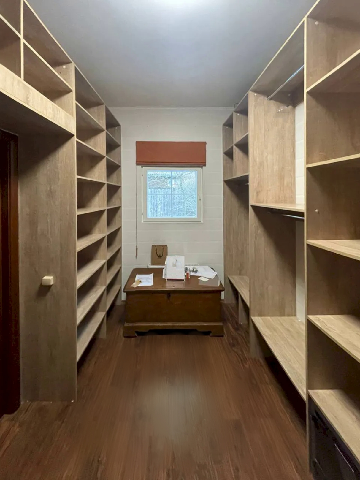 Гардеробная из ЛДСП у окна
