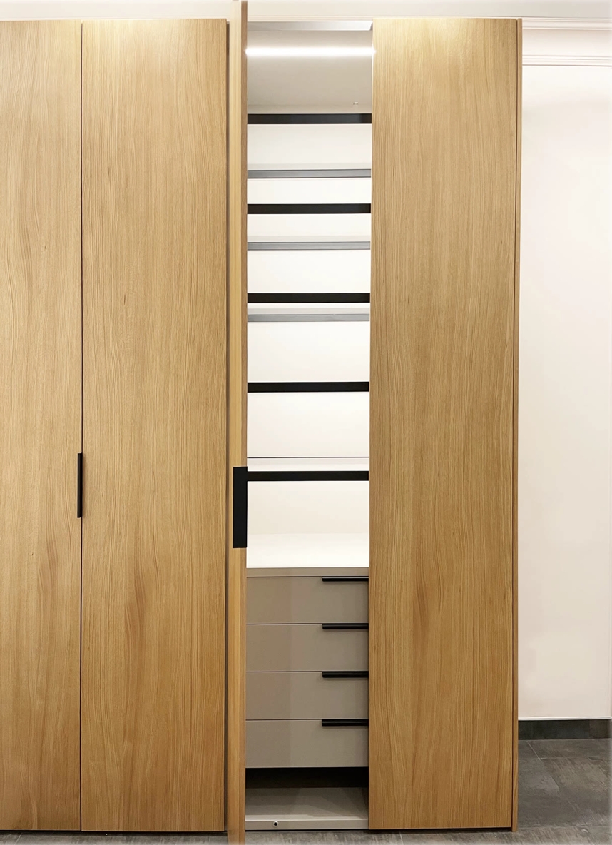 Гардеробные GARDEROB-PRO — это про чистую геометрию, скрытое удобство и премиальные материалы. Мы создаём решения, в которых каждый элемент — от толщины фасада до формы ручки — выверен и подчинён логике комфорта. Стильный внешний вид сочетается с продуманным внутренним наполнением, чтобы вы получали максимум удобства каждый день.