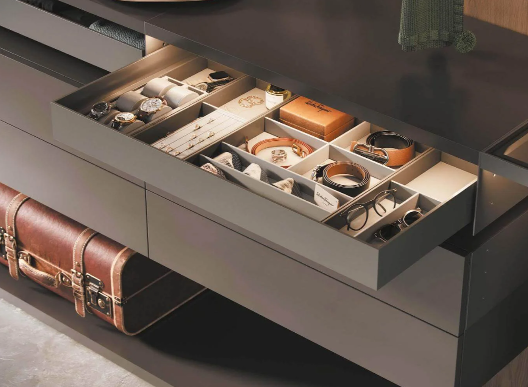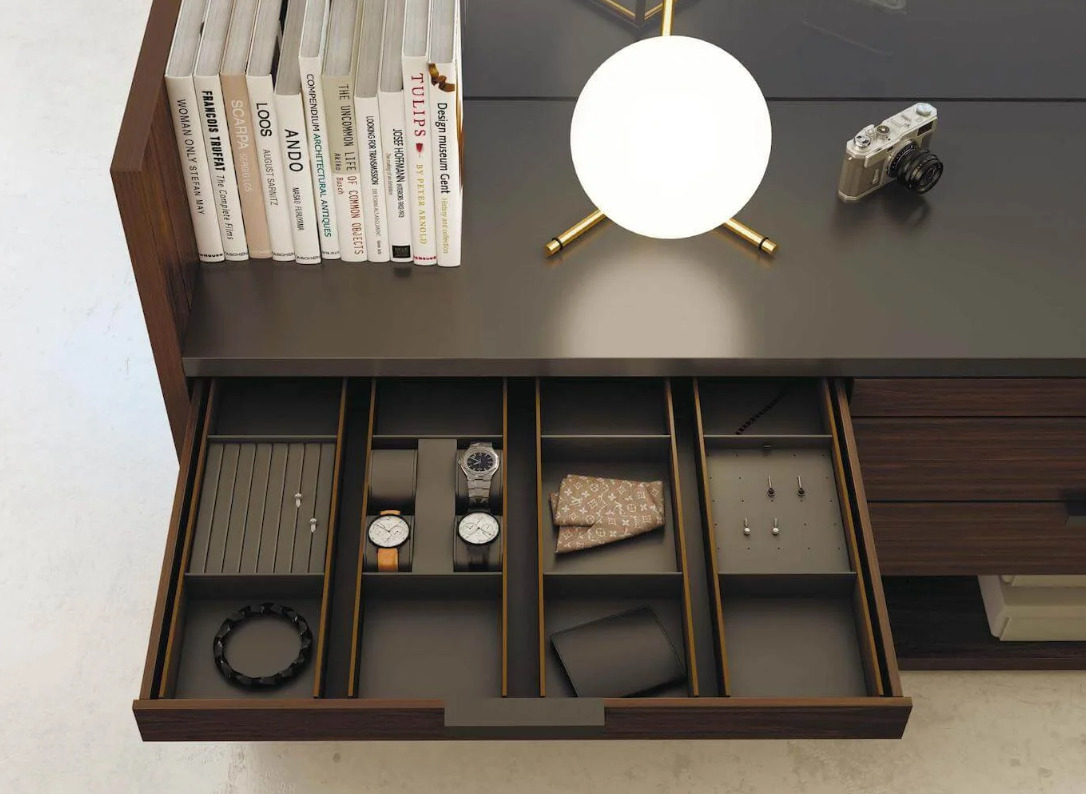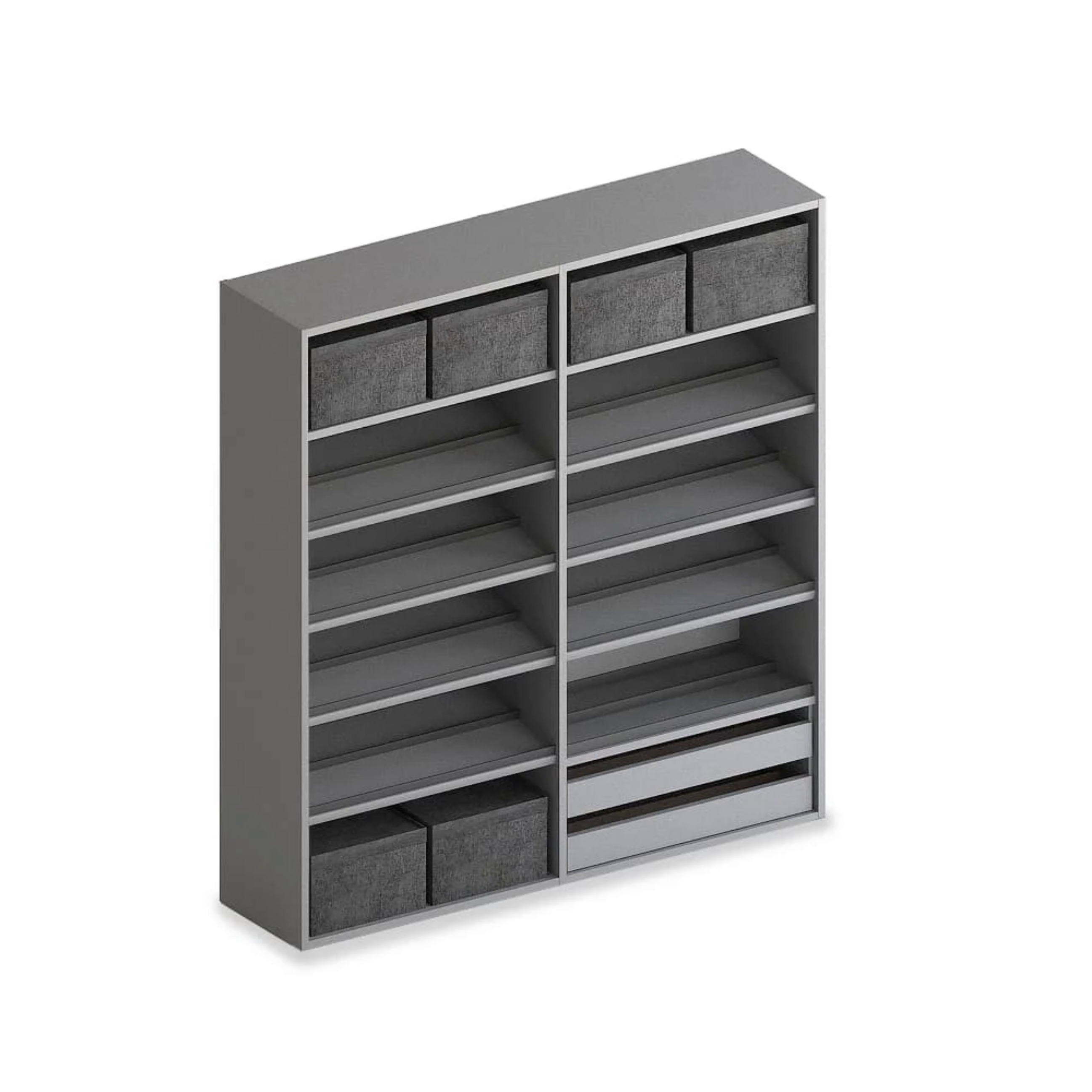 Стоимость гардеробной GARDEROB-PRO зависит от выбранных материалов и легко адаптируется под ваш бюджет. Практичные — меламиновые панели, прочные и износостойкие. Премиальные — шпон, эмаль, экокожа, стекло и алюминиевые профили для полок и фасадов.