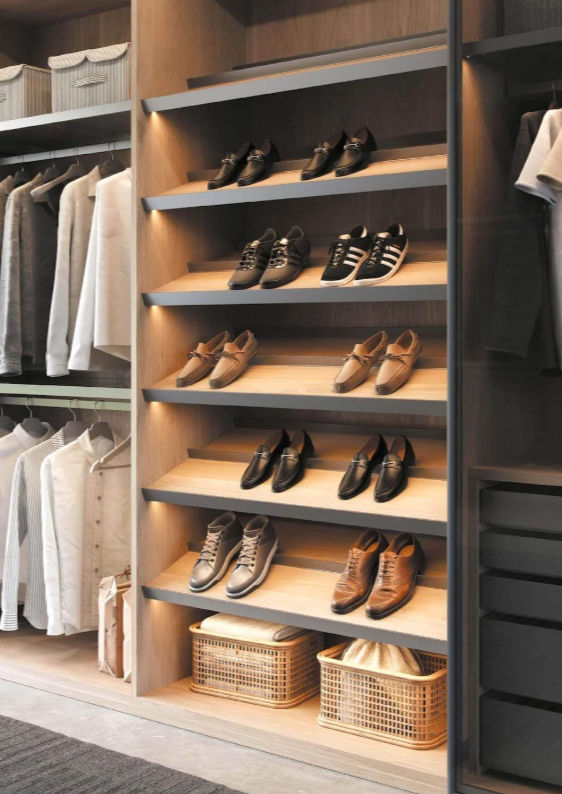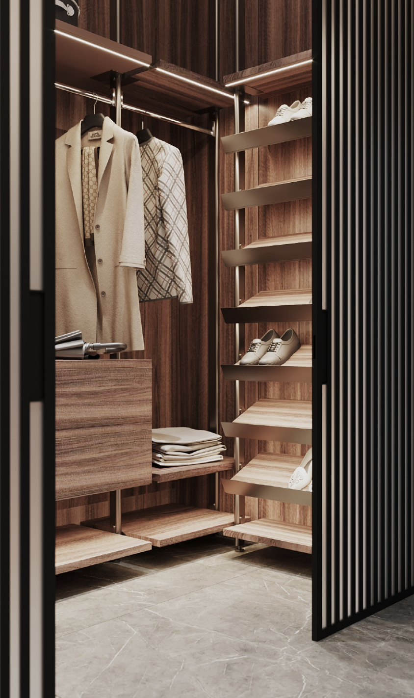 Открытые гардеробные GARDEROB-PRO — это минималистичный дизайн, визуальная лёгкость и функциональность на уровне ведущих европейских брендов. Мы создаём только системы хранения — от каркасных решений до стеклянных полок с подсветкой, органайзеров и модулей для обуви. Эргономика, внимание к деталям и современный подход делают GARDEROB-PRO заметным игроком на рынке.