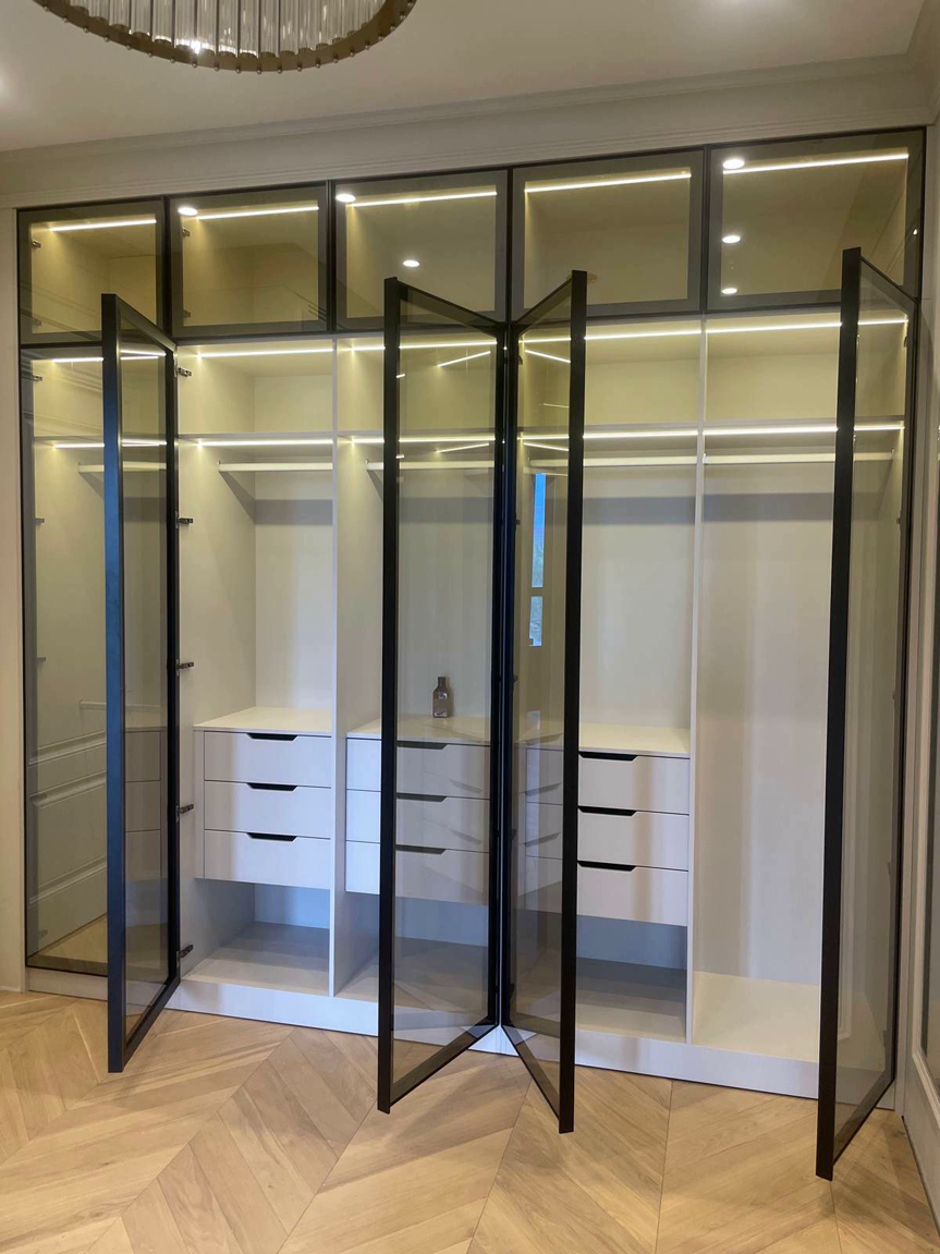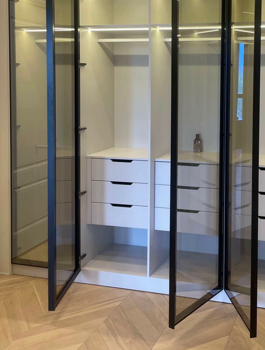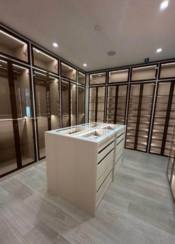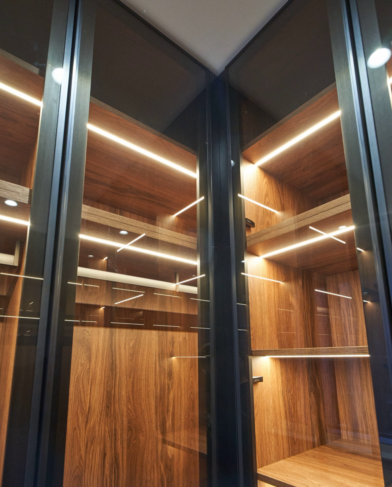 Стеклянные гардеробные GARDEROB-PRO — это идеальное сочетание эстетики и технологий. Узкий алюминиевый профиль, скрытые петли и стеклянные фасады создают лёгкий, воздушный образ без компромиссов в надёжности. Мы проектируем стеклянные гардеробные под архитектуру и стиль конкретного интерьера. От габаритов и конфигурации до отделки и освещения.
